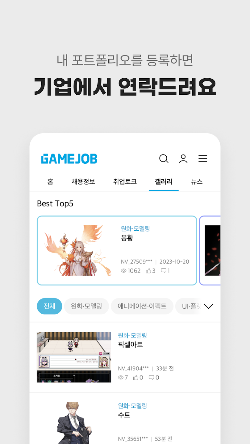 게임잡 - 게임취업 채용정보 이력서 포트폴리오 커뮤니티 - Google Play 앱
