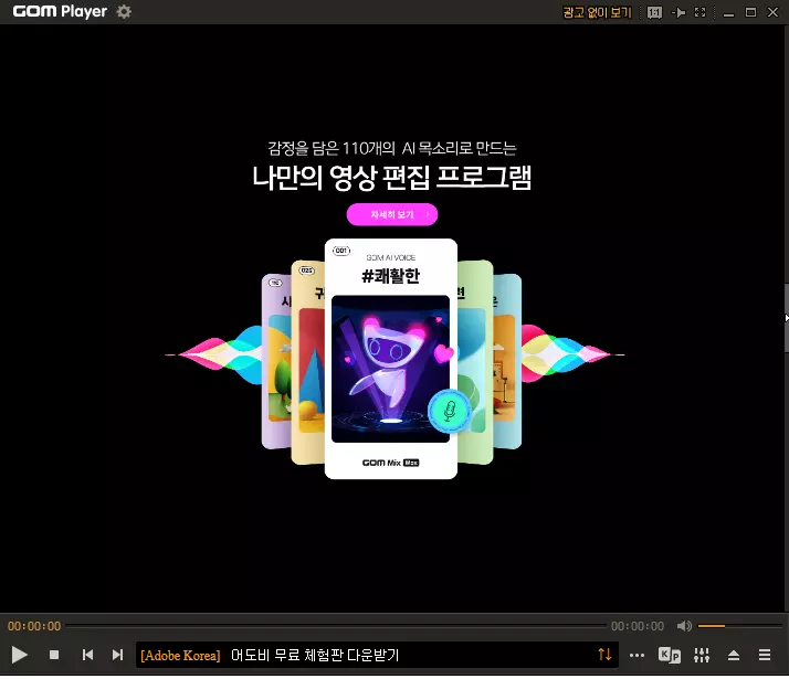 그러면 위와 같이 심플한 곰플레어 UI를 보여주는데, 여기에서 원하는 음악이나 영상 등을 무료로 플레이할 수 있다. 다만, 무료 버전의 곰플레이어에서는 광고가 나오므로 해당 광고를 제거하려면 유료인 곰플레이어 플러스를 구독해야 한다.