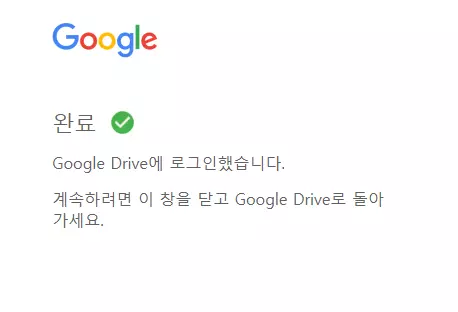 이후 구글 드라이브 로그인 팝업이 나오는데 여기에서 기존 구글 계정으로 로그인을 하면 된다. 참고로 구글은 계정당 15기가의 무료 저장공간을 제공하므로, 필요시에는 여러 개의 구글 계정을 활용해서 저장공간을 분리해 사용할 수도 있다.