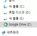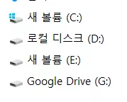 그러면 구글 드라이브를 컴퓨터 내 또 하나의 드라이브처럼 사용할 수 있는데, 일반적으로 구글 드라이브는 아래와 같이 G 드라이브로 나타난다. 물론, 사용자 드라이브 숫자에 따라 드라이브명은 다를 수 있지만 파일 탐색기를 활용하면 간단히 설치된 구글 드라이브를 확인할 수 있다.