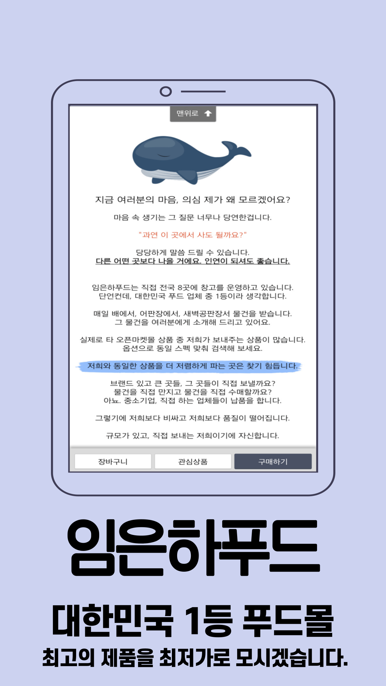 모든 상품을 가족에게 드린다는 마음으로 직접 선별하고 관리합니다. 그렇기에 임은하푸드는 자신있게 대한민국 1등이라고 말 할 수 있습니다.