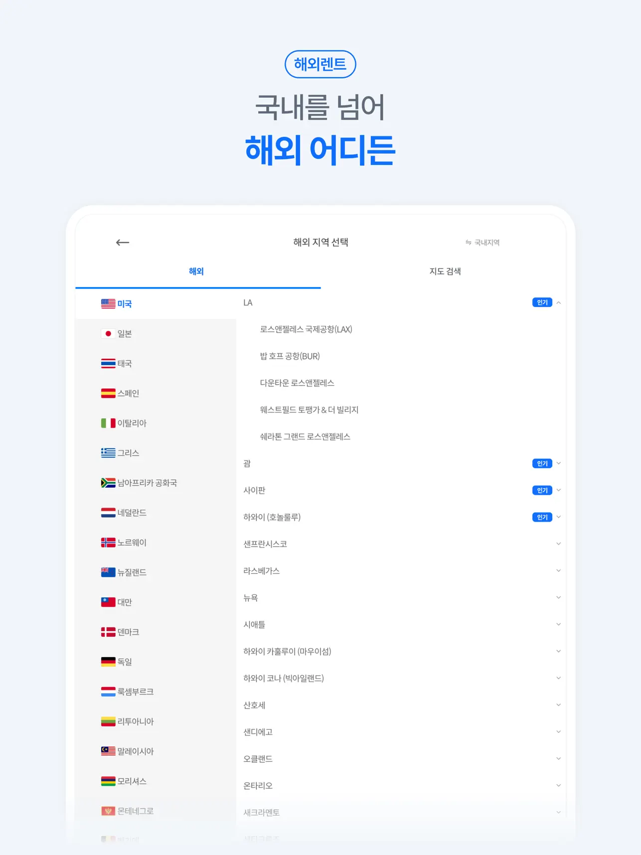 - 글로벌 50개국 렌터카 예약 서비스 제공!