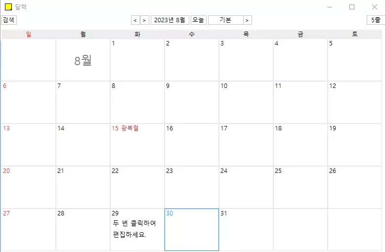 메모잇 프로그램에서 포스트잇 형태의 메모장과 함께 자주 사용되는 일정 관리 기능이 가능한 달력은 앞에서 언급한 트레이에서 마우스 우측 버튼을 누른 후에 달력을 선택해 실행하면 된다. 만약 달력 기능을 자주 사용한다면 달력 보이기/감추기 단축키인 Ctrl + Alt + Right 정도는 숙지하는 게 효율적이다.