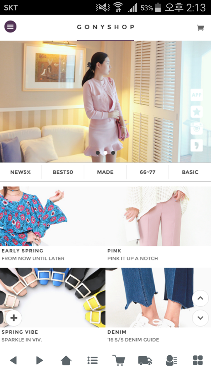 위에 추가한 앱스토어를 방문해서 고니샵 어플을 설치하면 모바일에 특화된 사용자 편의성을 고려한 UI를 활용하여 간편하게 쇼핑을 할 수 있는데, 모바일 어플을 사용 시에 모바일에서만 진행하는 특별한 혜택도 받을 수 있다. 더불어 신상 상품 5% 할인을 비롯해서 매월마다 상품 후기를 남긴 고객 중에 리뷰퀸을 선정해서 추가로 적립금을 드리는 등 다양한 이벤트를 수시로 펼치고 있다.