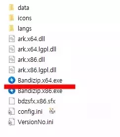포터블 반디집을 압축 해제하면 위와 같이 x64와 x86이 붙은 2가지 실행파일이 나오는데, 여기에서 x64가 64비트 윈도우용이며, x86이 32비트 윈도우용이다. 참고로 대두분 국내 윈도우용 컴퓨터는 64비트이므로 X64가 적힌 파일을 실행하면 된다.
