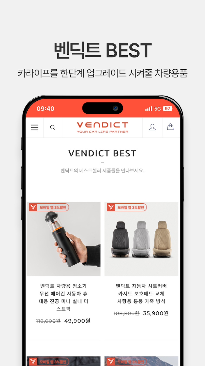 * 믿고 쓰는 차량용품 전문몰, 벤딕트! 벤딕트 앱에서 지금 확인해보세요. * 벤딕트 앱전용 혜택 벤딕트 앱 유저들에게만 드리는 특별 헤택! 1. 회원가입만 하면 60,000원 상당의 할인 쿠폰북 발