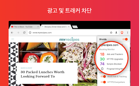 이렇듯 모바일에 브레이브 브라우저를 설치해 사용하면 빠른 탐색 기능과 더불어 광고 및 트래커 차단 기능을 무료로 활용할 수 있다. 더불어 익명화된 네트워크 라우팅, 멀웨어 및 피싱으로부터 보호하는 기능까지 제공한다.
