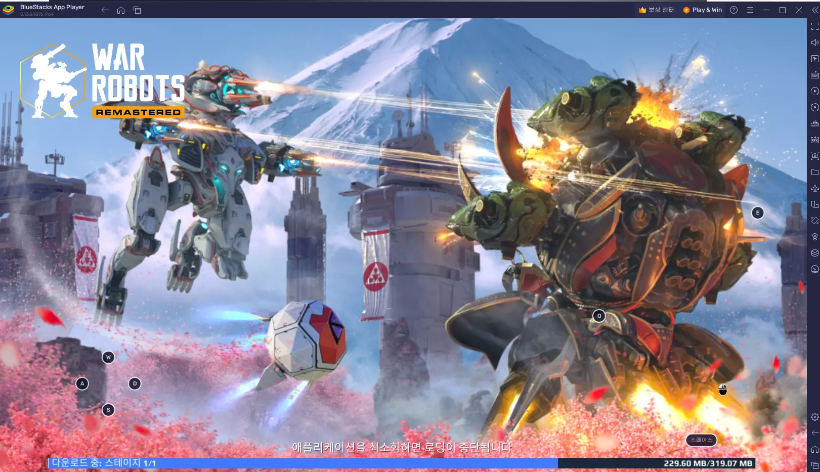 여기에서 플레이 버튼을 누르면 해당 모바일 게임을 로딩하는데 약간 시간을 소요한 후에 해당 게임을 실행한다. 아래에서 보듯이 모바일 게임을 PC버전으로 플레이하므로 스마트폰에서는 불가능했던 마우스 및 키보드를 활용해서 게임을 더욱 몰입감 있게 즐길 수 있다.