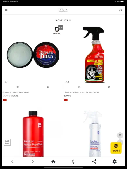 위의 이미지를 누르면 세알남 쇼핑몰로 전환하는데, 앞에서 언급했듯이 세알남은 셀프 세차에 특화된 전문 세차용품 쇼핑몰이다. 특히 대전광역시 서구에 오프라인 매장도 운영하며, 네이버 스마트스토어에도 입점한 상태이므로 접근성이 매우 좋은 세차용품 전문 쇼핑몰이다. 더불어 모바일에서 세알남 앱을 설치하면 URL 접속 방식인 세알남 쇼핑몰과 동일하게 세차용품 구매부터 셀프 세차 방법까지 이용할 수 있다..