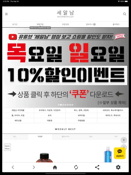 더불어 매주 목요일과 일요일은 유튜브 채널과 연계해서 유튜브 영상을 보고 10% 할인 쿠폰을 받을 수 있을 뿐만 아니라, 리퍼 상품 특가 이벤트를 상기로 진행하므로 저렴하게 세차용품을 구매할 수도 있다. 이외에 세알남은 세차에 대한 궁금증이나 이야기들을 소통할 수 있는 세차 커뮤니티 역할도 담당하고 있다.