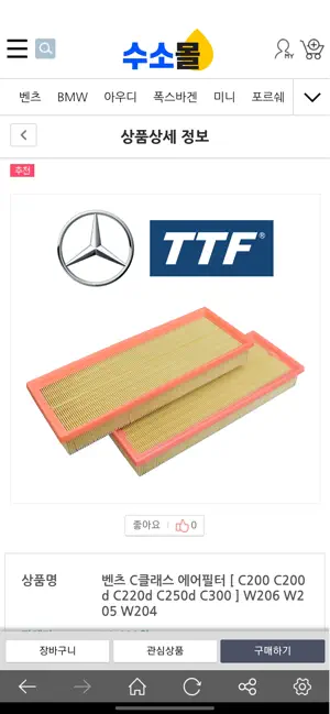 앞에서 살펴본 대로 수소몰은 수입차에 필요한 부품을 제공하는 전문몰로 운영하는데, 컴퓨터뿐만 아니라 모바일용 앱 그리고 네이버 스마트스토어에서도 동일한 수입차 소모품을 비롯한 자동차 부품을 구매할 수 있다.