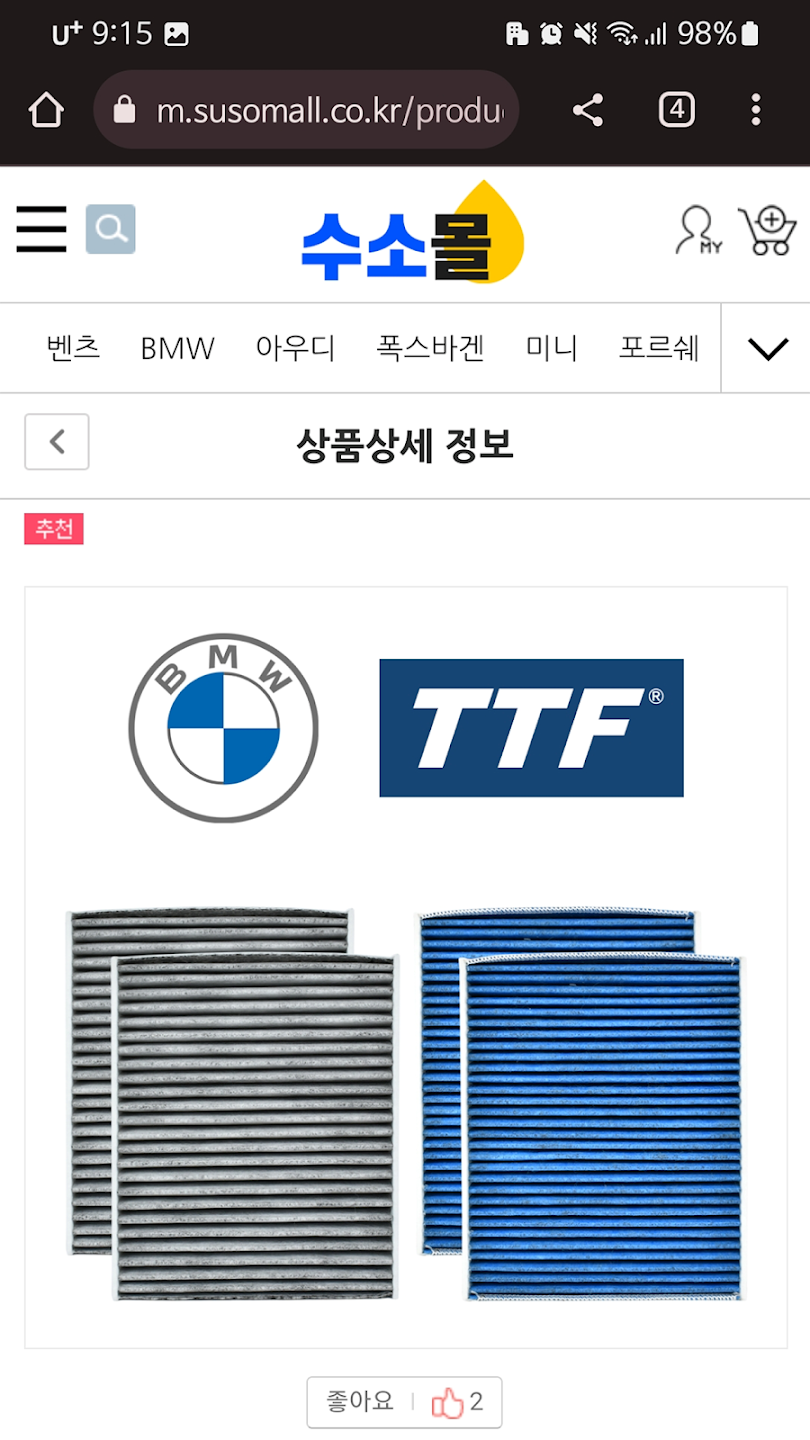 수소몰은 수입차를 가성비 있게 정비할 수 있는 소모품을 비롯하여 자동차 부품을 판매하는 쇼핑몰로, 더불어 실제로 수입차를 정비하는 방법까지 유튜브에서 영상으로 제공하고 있는 수입차 전문 자동차부품 쇼핑몰이다.