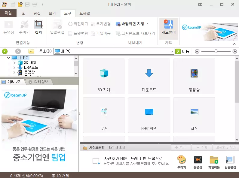 위와 같이 알씨 프로그램을 실행한 후에 상단 메뉴 중 도구를 누른 후에 캐드뷰어를 선택한다.