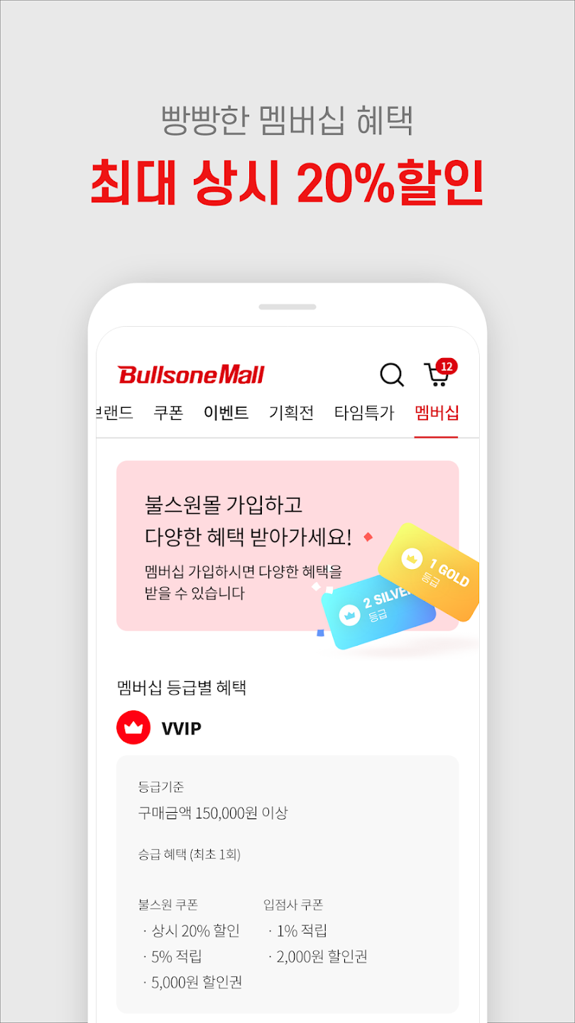 위에 추가한 구글 플레이스토어를 방문해서 불스원몰 앱을 설치한 후에 회원가입 시 즉시 사용할 수 있는 6000원에 달하는 포인트를 받을 수 있으며, 구매 실적에 따라 분류된 멤버십 등급별로 추가 혜택도 제공한다.