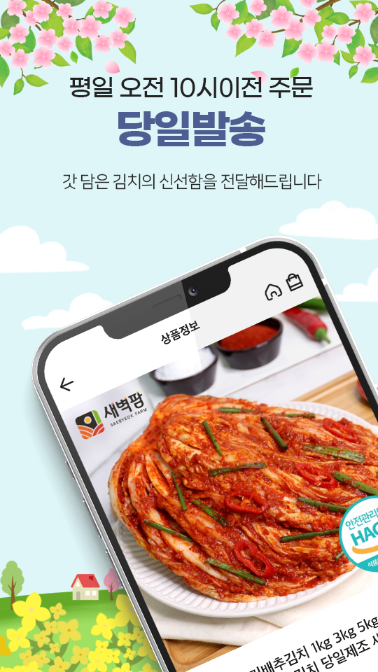 더불어 새벽팜 쇼핑몰 또는 새벽팜 앱을 이용해서 김치 상품을 주문 시에 결제 완료 기준으로 어전 10시 이전 주문 시에는 당일 발송하므로, 하루나 이틀 정도면 가정에서 해당 김치 상품을 받아볼 수 있다.