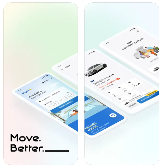 위에 추가한 앱스토어를 방문해서 빌리카 어플을 설치하면 모바일에 특화된 사용자 편의성을 고려한 UI를 활용하여 간편하게 사용할 수 있는데, 특히 모바일로 간편하게 예약하고 이용이 가능할 뿐만 아니라 사전에 모바일로 차량의 위치를 확인하고 빠르게 대여할 수 있다.