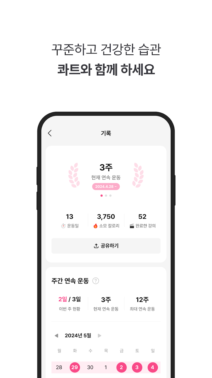 가장 쉬운 건강관리, 콰트(QUAT) 시작이 어려운 당신을 위해 운동부터 식단까지 모두 챙겨드려요. ○ 운동 습관 만들기 하루 10분도 괜찮아요! 운동 후 포인트를 획득하며 성취감을 느껴보세요!