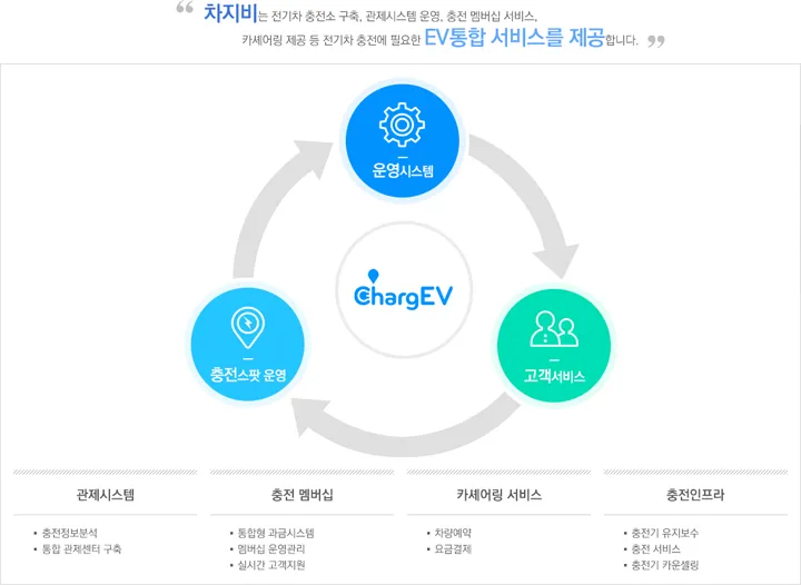 전기차 충전기부터 플랫폼까지 서비스하는 차지인은 직접 충전소를 구축하고 운영하기보다는 전기차 충전 사업을 할 수 있도록 충전 인프라를 구축하는 사업을 전문으로 하는 전기차 충전 인프라 전문기업이다.