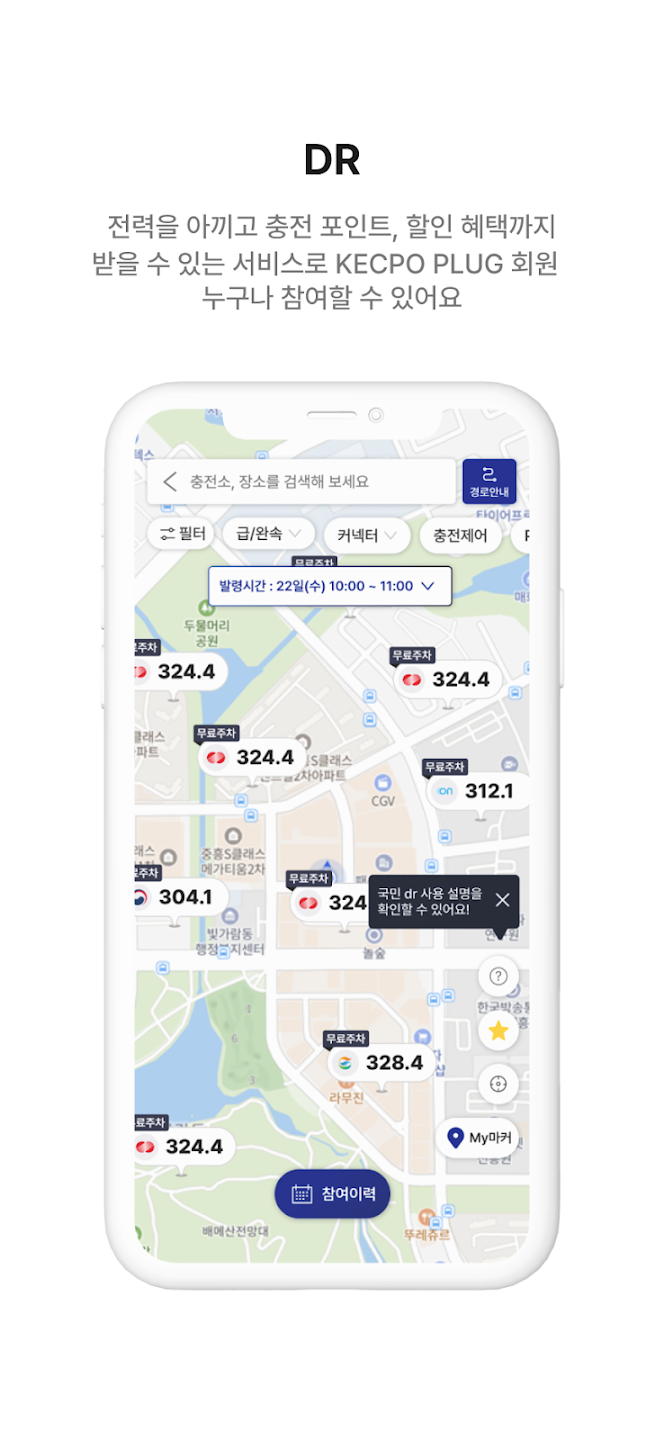 한국전력공사의 전기차 충전서비스를 이용하고자 하는 고객들을 위한 어플리케이션이며, 다음과 같은 서비스를 제공합니다. 1. 범용서비스(로그인 없이 이용 가능) - 충전소 위치 및 상태 정