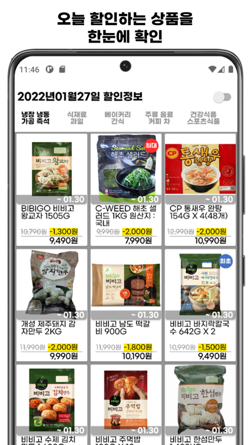 위에 추가한 앱스토어를 방문해서 코코할인마 어플을 설치하면 모바일에 특화된 사용자 편의성을 고려한 UI를 활용하여 간편하게 오늘 할인하는 상품을 한눈에 확인할 수 있는데, 모바일 어플을 사용하면 쇼핑리스트로 쉽게 메모하고 확인도 할 수 있어서 매우 유용하다.