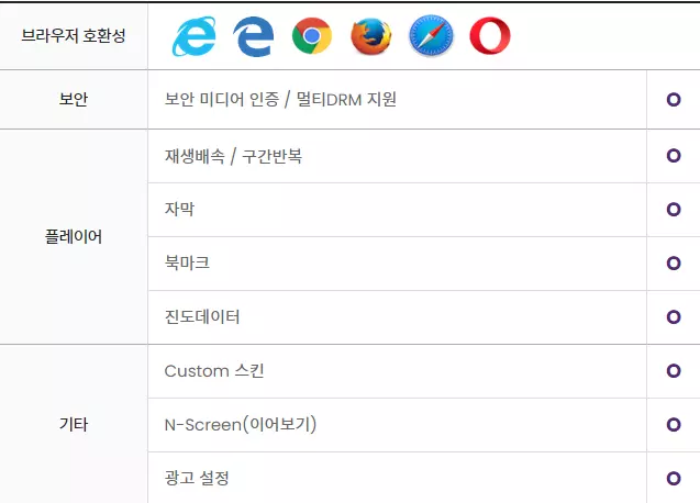 또한 현존하는 대부분의 운영체계와 브라우저를 지원하는 영상 플레이어로, 시각 장애, 저시력자, 색약자를 위한 웹접근성 플레이어도 제공하고 있다.