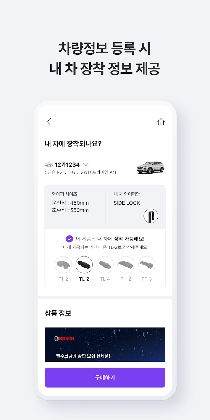 특히 차량번호만 등록하면 차량에 딱 맞는 상품을 추천받을 수 있으므로, 타이어 사이즈를 몰라도 배터리 용량을 몰라도 차량 번호만 기재하면 자동차 규격에 맞는 상품으로 교체 또는 정비 서비스를 간편하게 받을 수 있다.