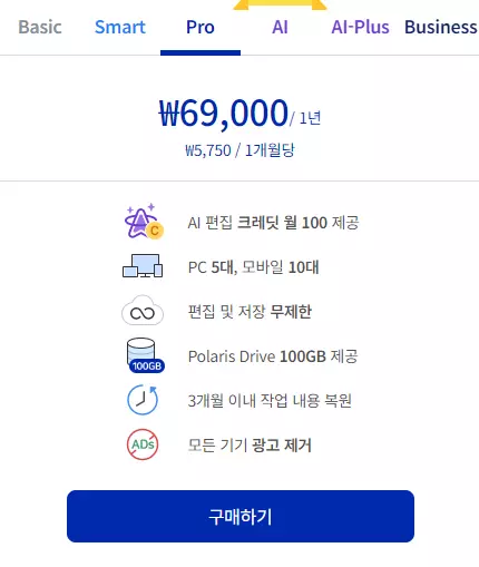 한글, 엑셀, 파워포인트, 워드 문서는 물론 PDF까지 무료로 파일을 열고 편집이 가능한 폴라리스 오피스는 컴퓨터 또는 모바일에서 설치해서 사용할 수 있다. 더불어 별도로 설치없이 컴퓨터에서 폴라리스 오피스를 웹 버전으로도 사용이 가능하며, 최근에는 AI 기술을 적용한 폴라리스 오피스 AI까지 선보였다. 참고로, 기본적인 문서 작업은 무료인 Basic 버전만으로 충분하지만 비즈니스 및 고급 기능은 구독료 또는 평생소장용을 구매해야만 사용이 가능하다.