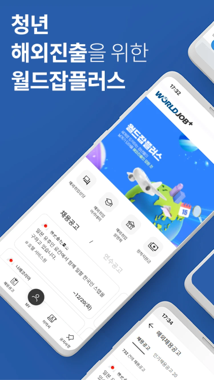 월드잡플러스 모바일 앱은 청년들의 도전적인 해외진출을 지원하는 국정과제 K-MOVE 사업의 일환으로, 해외취업/창업/인턴/봉사 등 해외진출 관련 정보를 한곳에서 볼수있는 모바일 앱입니다.