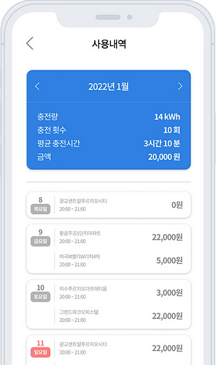 즉, EVpay 앱을 설치한 후에 이름과 전화번호로 로그인을 한 후에 결제 카드 정보를 입력해서 등록하면, 이후 충전기에 부착된 QR 코드만 인식하면 자동으로 충전을 할 수 있다. 더불어 일자별로 정리된 충전 내역을 살펴볼 수 있어서 효율적으로 전기차 충전 비용을 관리할 수 있다.