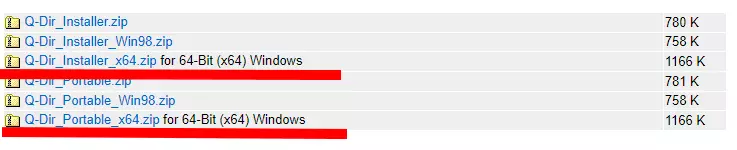 위에 있는 Q-Dir 무설치 버전 다운로드 버튼을 누르면 윈도우즈 64비트 PC에서 실행하는 Q-Dir 프로그램을 다운로드한다. 참고로, 윈도우즈 32비트 PC라면 Q-Dir 다운로드 항목 리스트 중에서 중앙에 있는 Q-Dir_Portable.zip를 다운로드하면 된다.