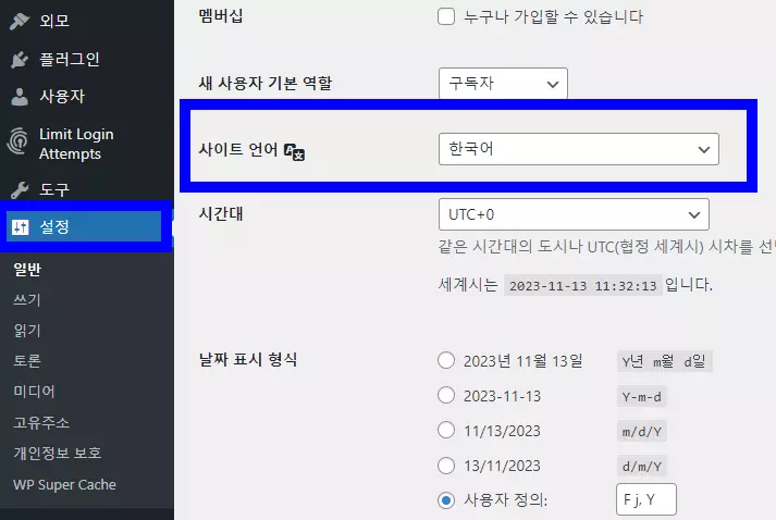 워드프레스 관리자 페이지로 접속했다면 앞에서 plesk를 활용해서 워드프레스를 설치할 때 언어를 한국어로 선택했으므로, 워드프레스가 위와 같이 한국어로 설정된다. 하지만 vultr가 아닌 다른 서버에서 워드프레스를 설치했거나 plesk에서 기본값 상태로 워드프레스를 설치했다면 설정에서 언어 항목에서 한국어를 선택하면, 바로 한국어가 적용되므로 사용에 별다른 어려움은 없다. 더불어 향후 추가로 워드프레스 관리자 페이지에서 기본적인 세팅을 해야 하는데, 여기에서는 검색 엔진에 등록을 먼저 하고 워드프레스 관리자 페이지 세팅은 다음에 따로 자세히 포스팅한다.