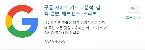 사이트킷이 설치되어 있지 않다면 워드프레스 관리자 화면에서 플러그인을 누른 다음에 추가로 나오는 항목에서 Add New Plugin을 선택한 후에 우측 화면 상단에 사이트킷으로 검색한다. 그러면 구글 사이트 키트가 나오는데 여기에서 설치 버튼을 누른 다음에 활성화로 바뀌면 활성화 버튼을 다시 한번 누른다.