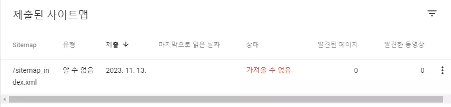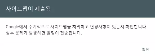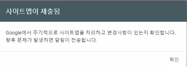 즉, 자신의 도메인이 dasfl.com이라면 https://dasfl.com/sitemap_index.xml이라고 이라고 적힌 상태에서 제출 버튼을 누르면 된다.