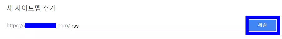 다음으로 rss를 등록하는데, 해당 rss는 도메인명 다음에 사이트맵 URL 입력이라고 적힌 공간에 rss만 기재한 후에 제출 버튼을 누르면 된다.