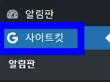 다음으로 워드프레스 관리자 페이지에서 좌측 상단에 알림판 다음에 사이트킷이 있는 지 확인한다. plesk에서 워드프레스를 설치했다면 기본적으로 사이트킷 플러그인이 설치되어 있는데, 다른 방식으로 워드프레스를 설치했다면 해당 사이트킷을 플러그인에서 검색해서 설치해야 한다. 참고로, 해당 사이트킷 플러그인을 설치하면 구글 검색 엔진에 간편하게 등록할 수 있을 뿐만 아니라 구글 애널리틱스까지 한 번에 연결이 되므로 필수로 설치해야 하는 플러그인이다.