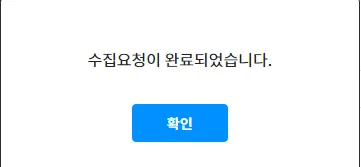 위와 같이 입력한 후에 수집 요청 버튼을 각각 누르면 아래와 같이 수집요청이 완료되었습니다라는 팝업이 나오면 확인 버튼을 누른다.