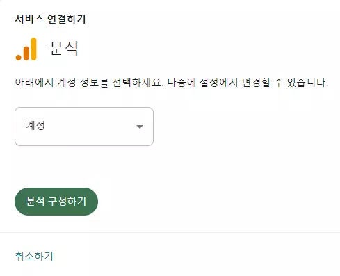 그런 후에 Next 버튼까지 눌러주면 분석 진행 화면이 나온 후에 위와 같이 서비스 연결하기 화면이 뜨는데 여기에서 계정을 누르면 새 계정 설정하기 항목이 보이는데, 해당 새 계정 설정하기 항목을 선택한다.