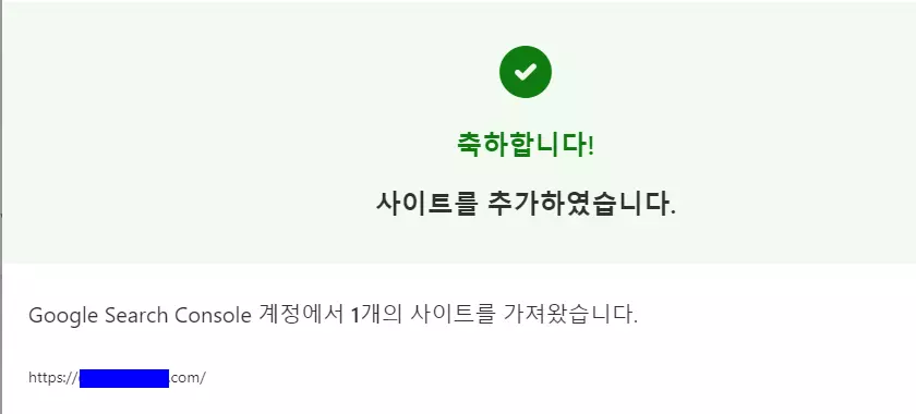 그러면 위와 같이 사이트를 추가하였습니다라는 문구가 나오면 하단에 있는 완료 버튼을 누르면 된다.