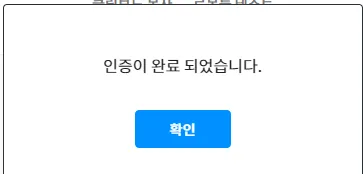 이후 다음 웹마스터 도구 페이지에서 로봇룰 테스트 항목을 눌러서 제대로 동작하는지 확인한다. 그러면 아래와 같은 인증이 완료 되었습니다라는 팝업이 나오면 정상적으로 robots.txt 파일을 수정했다는 의미이므로 확인 버튼을 누른다.